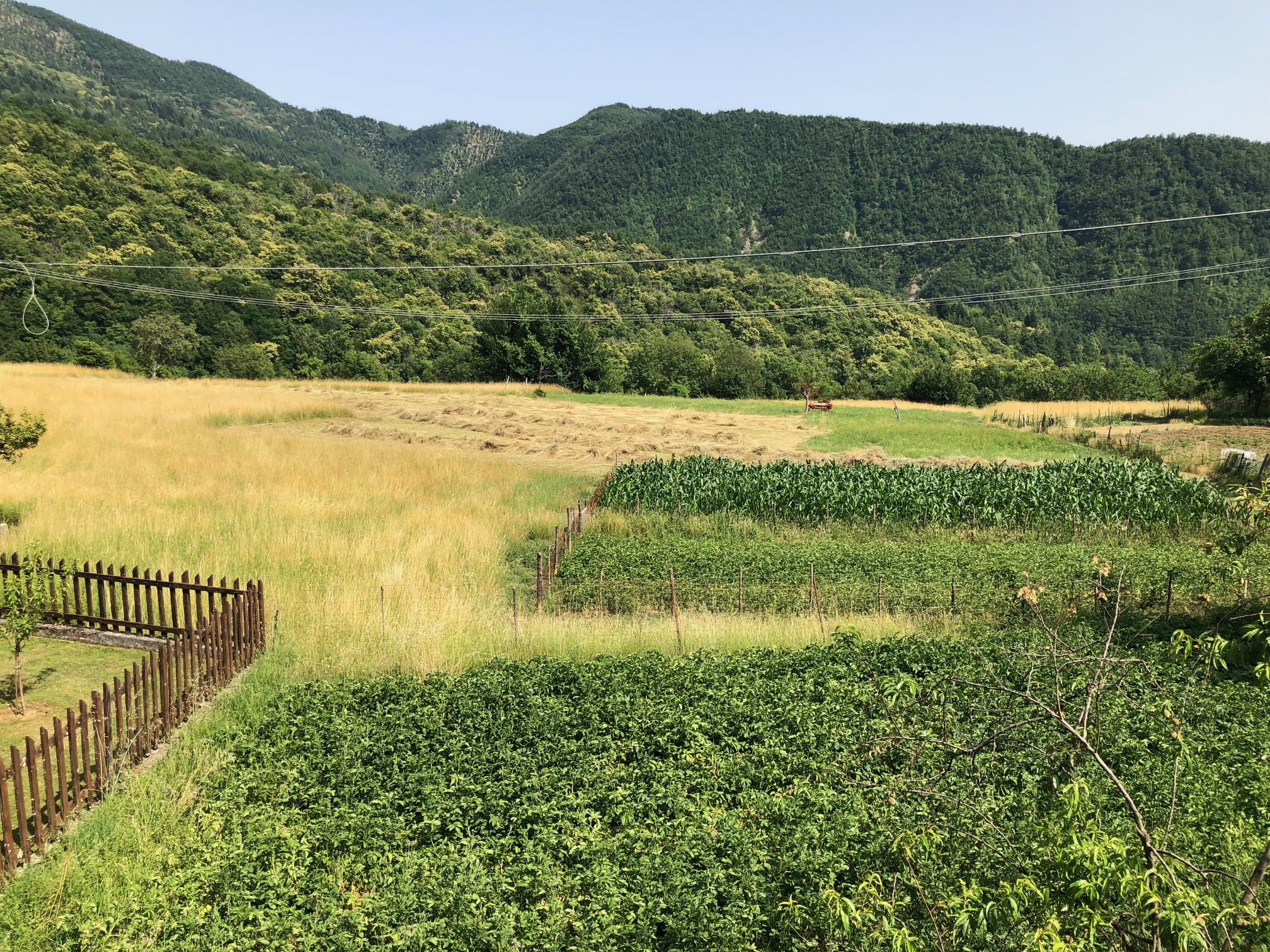Our experience in Taponecco didn’t finish there. Two days later we stopped over to find Stella and Angiolino, an elderly couple whose whole family still live in Taponecco and remember my Nonni well. Angiolino, who grew up as a neighbour to my Nonna as a child, recalled going up to the Prada del Re (a main field just outside Apella at an altitude of 1000 metres) and Giovarello pass with my Nonno, where they used to go in groups to make hay. He recalled when they used to make beds out of wood and leaves they would find up there so they could sleep overnight. They both laughed at how much work they used to do and how they used to live. They both showed us the main patches next to their house in Taponecco where they still grow their own food. Their small patches are amongst a greater field that once used to be entirely cultivated by the whole village at the time when my Nonna used to work the land as a little girl with her family. Now with less people working the land, most parts have become overgrown, and with this has also increased the populations of wild animals. Stella lamented how just a few days earlier there was a large cinghiale (wild boar) right outside her house on the road at night, and even when she made noise it wasn’t scared off at all!